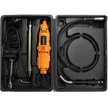 Посадочный диаметр 22,3 мм. Диаметр диска 114 мм. Частота вращения 5 000 об/мин. Мощность 100 Вт. Станок предназначен для заточки зубьев пильной цепи бензиновых и электрических цепных пил. Регулировки угла заточки цепи. Можно затачивать кромку пил и другие острые металлические инструменты, даёт возможность поправить фрезы, резцы и сверла. Механизм фиксации и регулировки угла зубья цепи.