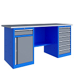 Двухтумбовый. Допустимая нагрузка на столешницу 1000 кг. Опорные элементы выполнены сварными из холоднокатаной стали. Для выполнения сборочных, ремонтных, слесарных, монтажных и других видов работ на производстве, в сервисных центрах, мастерских, гаражах, а также для обучения технологии в учебных заведениях. Комплектуется полкой-стенкой, расположенной под столешницей для удобного размещения габаритного инструмента и оснастки. Размеры верстака: 855x1796x696 мм. Вес: 131 кг. Поставляется в 4 комплектациях на выбор.