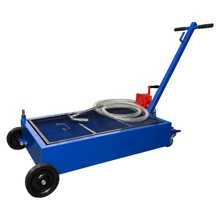 Подкатная установка для слива отработанного масла 68л., антифризов из ДВС, КПП, мостов автомобилей, квадроциклов, грузовиков, тракторов с клиренсом от 190мм. Регулировка угла наклона рукояти 0˚÷150˚. Слив из установки в бочку электрическим шестерёнчатым насосом 220В. Сетка улавливает мелкие детали и предотвращает разбрызгивание. Вес 19 кг. Размеры ванны внутри: (ДxШxВ) 747х476х180 мм.