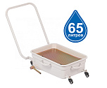 Мобильная ванна для слива масла и антифриза. Ручка складывается. Емкость 65 литров с сеткой для улавливания мелких предметов. Чаша (воронка) для сбора масла не позволяет разбрызгивать масло и антифриз при сливе. Колёса 2 прямых + 2 поворотных. Для любых легковых и грузовых автомобилей. Масса 25 кг. Размеры тележки: (ДxШxВ) 700*500*250 мм.