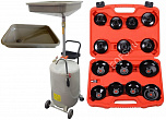 Комплект TS372065 Подкатная тележка-ванна для замены (слива) отработанного масла на 65 л. на смотровой яме(канаве) или четырехстоечном подъемнике. Ширина ямы 750-1200мм. Для любых легковых и грузовых автомобилей. + ES0901 Набор съемников масляных фильтров ("чашки") - 15 шт. Комплект идеально подойдет для пункта замены масла с средней и высокой проходимостью.