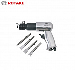 Компактный и мощный инструмент. Корпус выполнен из легкого и прочного алюминиевого сплава. Для выполнения ударных, режущих и рубящих работ или удаления заклепок, снятия слоя старого покрытия. При длине 130 мм частота ударов молотка составляет 4300 уд/мин. Рабочий ход составляет 43 мм. В комплект поставки входят 2 стальных зубила.