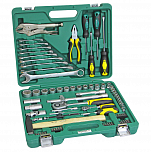 Набор инструментов слесарно-монтажный 1/4,1/2 6-ти гран. в чемодане 90 предметов. В комплекте: головки 1/4", головки глубокие 1/4", головки TORX 1/4", головки TORX 1/2", головки 1/2", трещотка 1/4", кардан 1/4", вороток-отвертка 1/4, удлинитель 1/4" кардан 1/4", удлинитель гибкий 1/4", вороток с плавающей головкой, трещотка 1/2, удлинитель 1/2, 125 и 250 мм, кардан 1/2", свечные головки 1/2, переходник 3/8(F)х1/2(М), биты 1/4", ключи рожково-накидные, пассатижи 7, клещи переставные 250 мм, молоток 500 г., отвертки РН и SL.