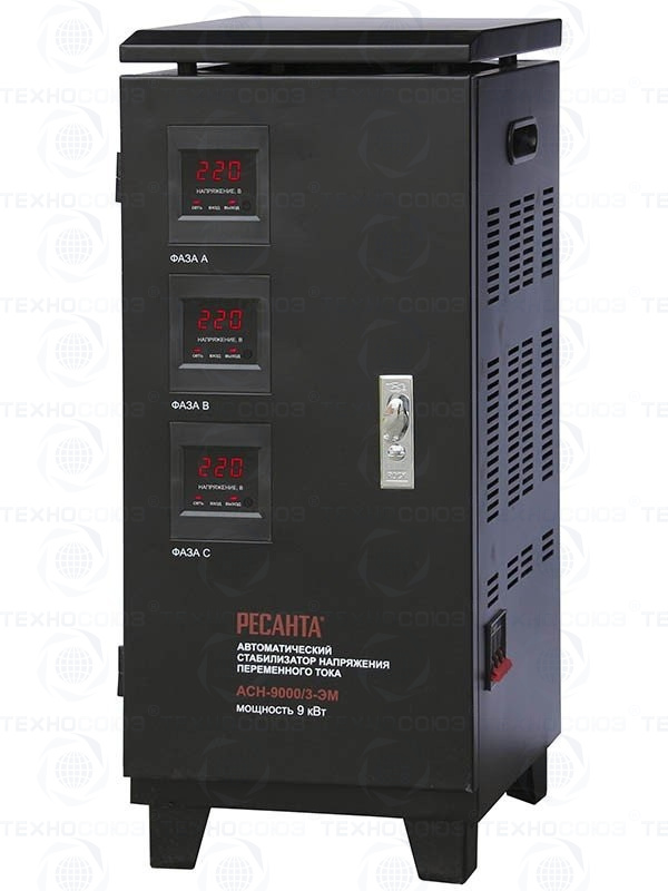 Комплектация: Стабилизатор напряжения РЕСАНТА Инструкция УпаковкаСтабилизатор напряжения РЕСАНТА АСН-9000/3-ЭМ