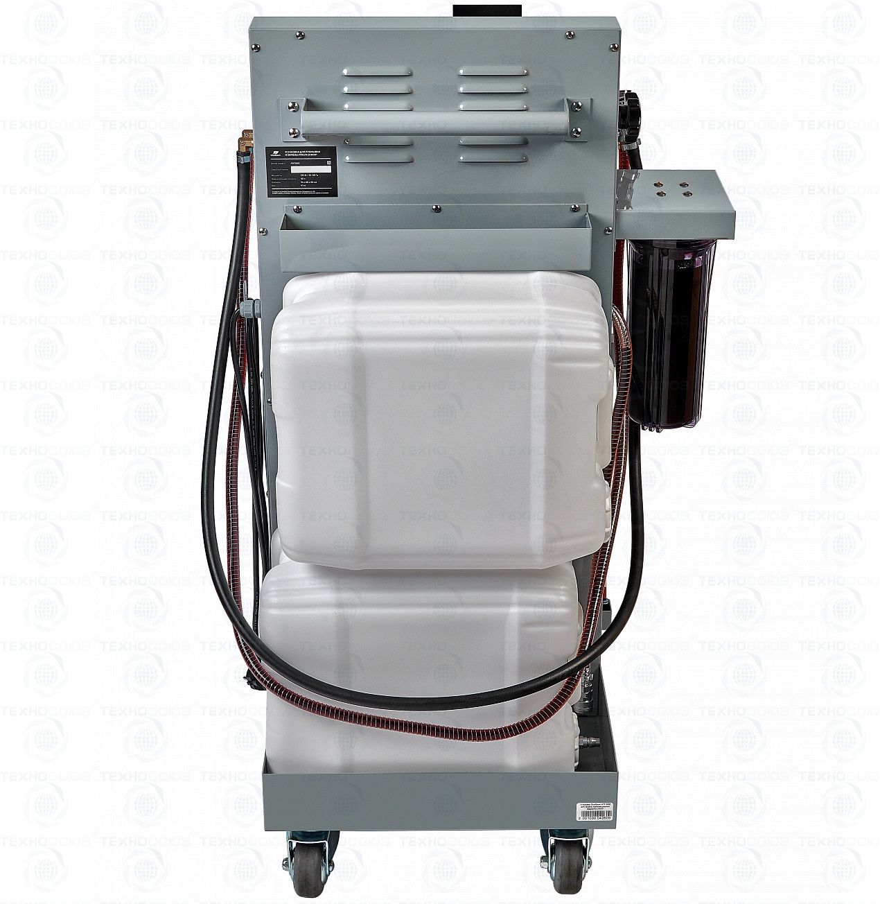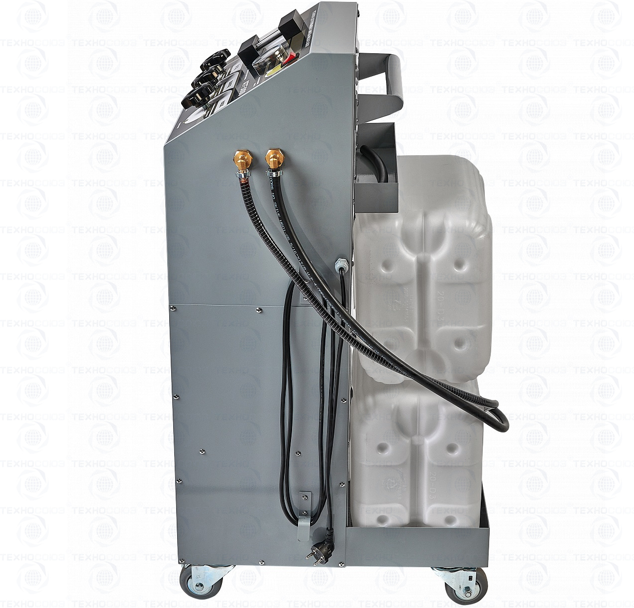Мощный насос в совокупности с 40 литровым резервуаром для отработанного масла расширяет диапазон применения установки в сегменте спецтехники. Возможно применение внешних емкостей для свежего масла. Контроль давления в магистрали АКПП осуществляется встроенным манометром.