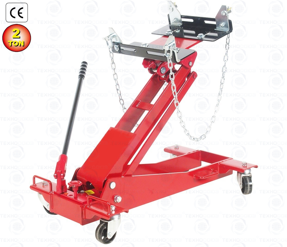 Домкрат трансмиссионный для снятия/установки ОСОБО ТЯЖЕЛЫХ АГРЕГАТОВ (КПП, мостов и т.п.) г/п 2 т. Подъем 230-880 мм. Маневренный – два колеса поворотные. Оборудован страховочной цепью, для фиксации агрегата.