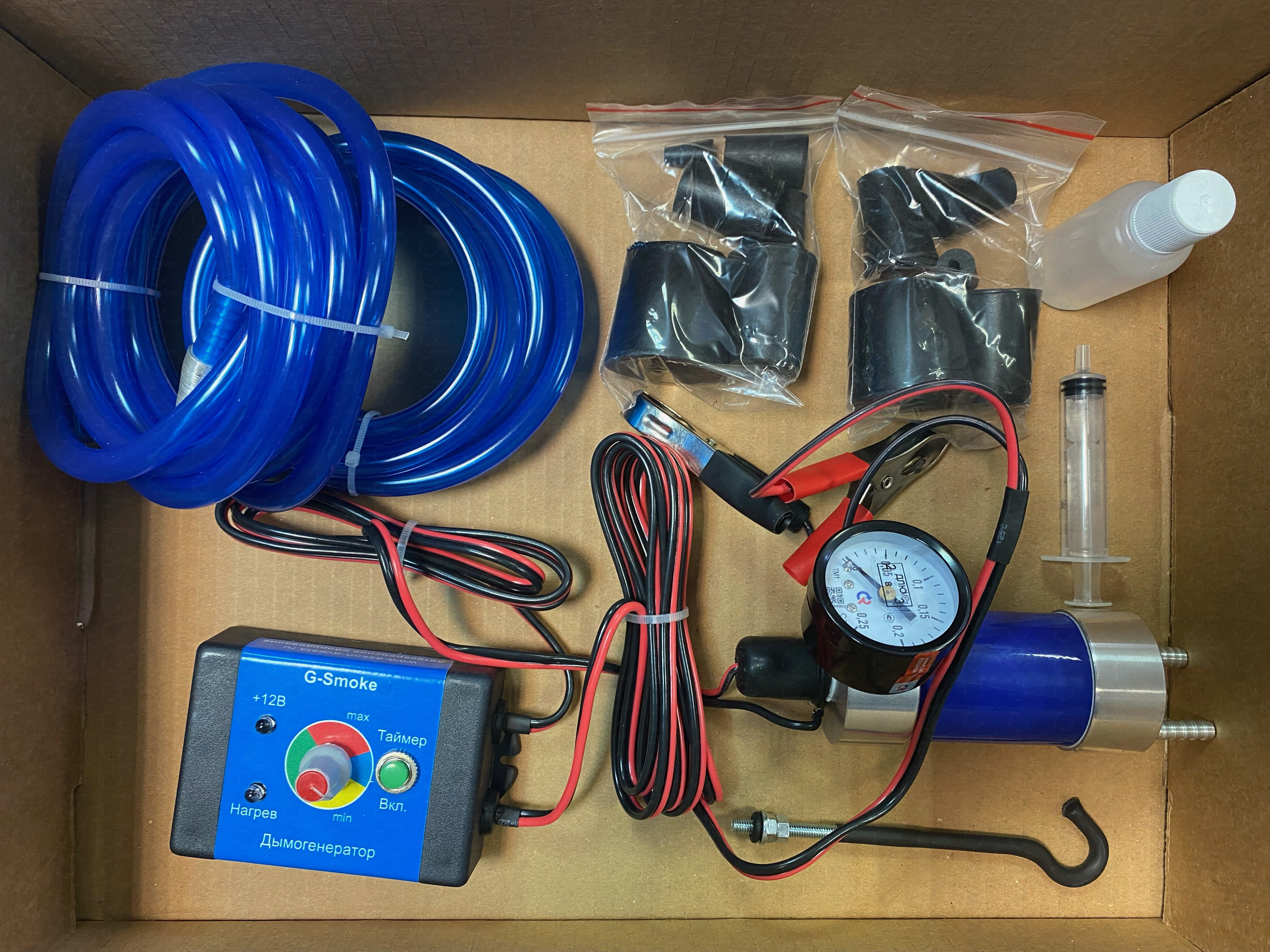 Дымогенератор для авто G-Smoke с таймером и регулятором плотности дыма необходим, когда требуется обнаружить негерметичность в узлах и системах, влияющих на работу двигателя и электронного блока управления . Простой, удобный и доступный прибор для быстрого и эффективного поиска неисправностей. Поставляется с комплектом резиновых конусных пробок №1 (пробки без бокса) + УФ дымовой жидкостью + защитными очками + ультрафиолетовым фонарём 21 светодиод 395 нм.