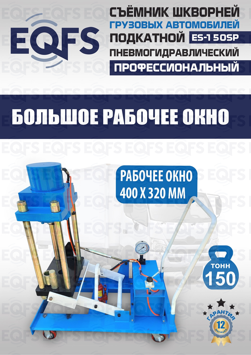 Сокращает время ремонта. Позволяет работать под разными углами 1 человеку. Мобильный. Для выпрессовки шкворней из поворотной цапфы погрузчиков, тракторов, строительной техники, коммерческих и грузовых авто отечественного и импортного производства: MAN, MERCEDES, SCANIA, VOLVO, Корейские и Китайские автомобили. Можно использовать при выездных работах. Пневмогидравлический привод - требуется подключение сжатого воздуха. Рабочее окно 400x320 мм. Усилие 150 тонн.
