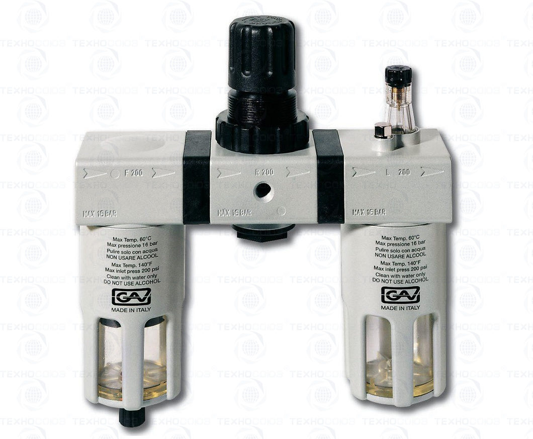 Регулятор давления воздуха с лубрикатором, влагоотделителем и манометром 1/4”. Пропускная способность – 700 л/мин. Давление компрессора 0-12 Бар. Снижает давление между компрессором и пневмоинструментом.