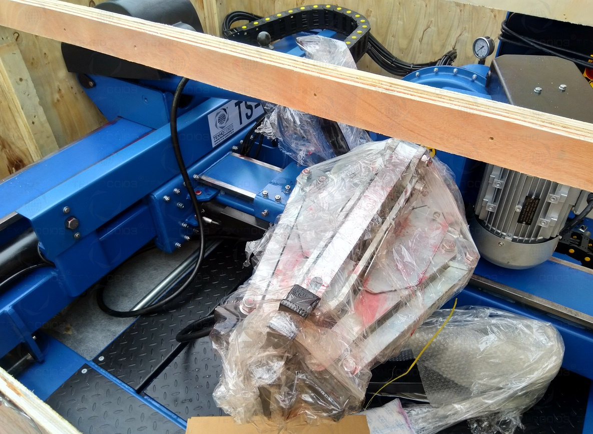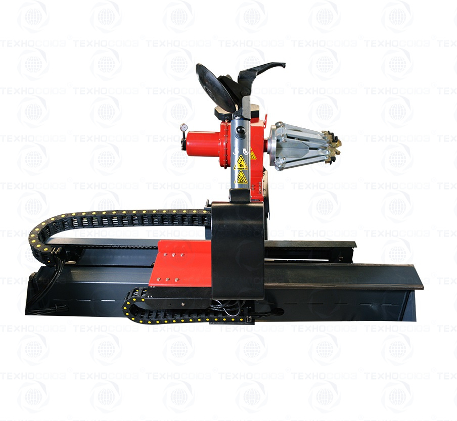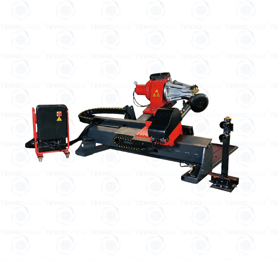 Грузовой шиномонтажный станок оборудован механизмом фиксации поворотной инструментальной консоли.