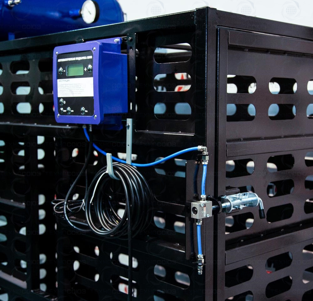Во время накачивания, оператор может находиться на безопасном расстоянии от непосредственно колеса благодаря использованию устройства автоматического накачивания. В целях повышения безопасности процесса работы.