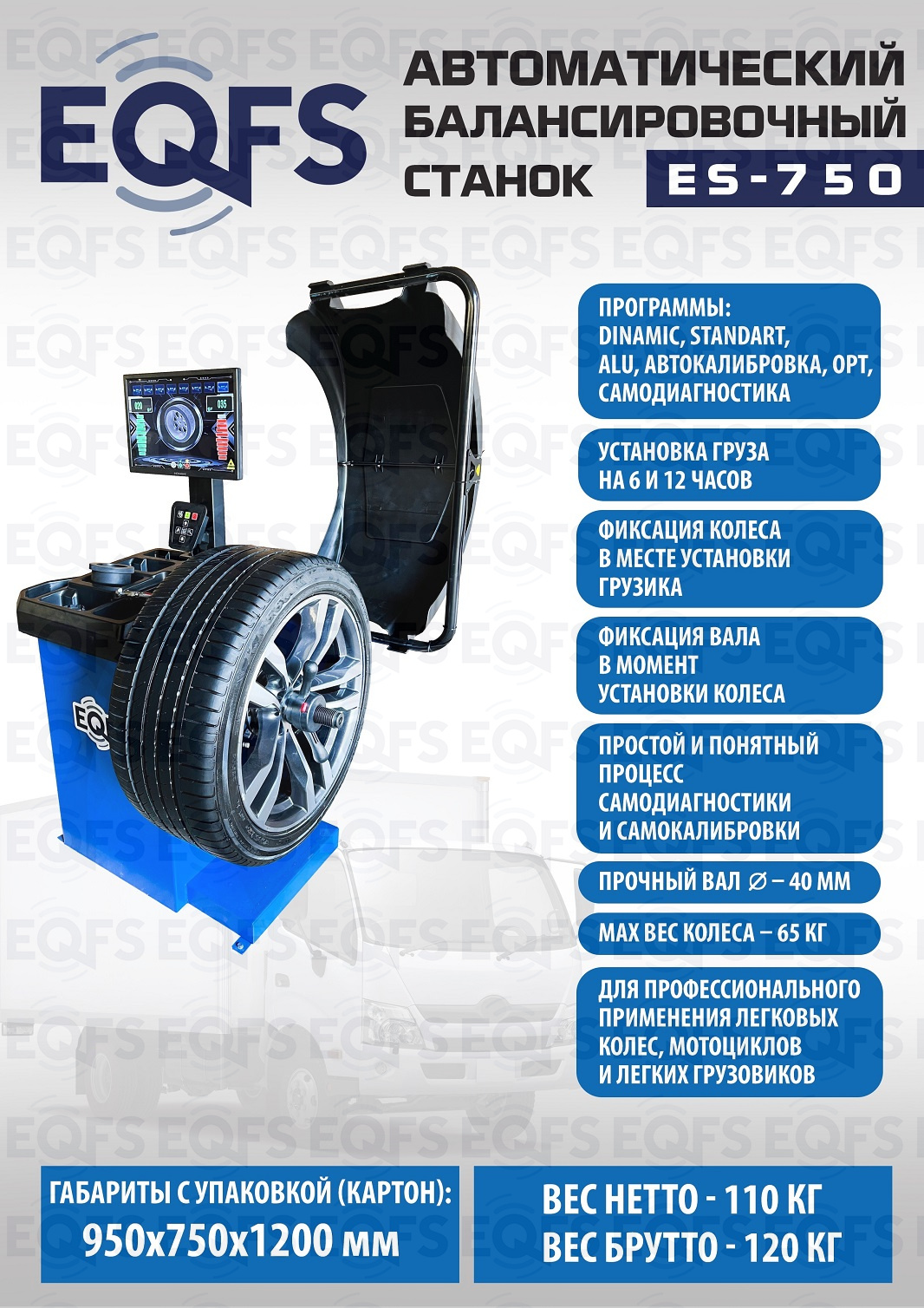 ES-750 Балансировочный станок. Автомат. Для широких колес 315 х R21 от BMW, MB, RANGE ROVER и т.д. Ввод 3-х параметров ( диаметра диска, дистанции и ширины диска), 19-дюймовый LCD монитор с высококачественной 3D-графикой, ультразвуковой датчик ширины. Автодоводчик и лазерная указка места установки грузика. Статическая и динамическая балансировка, ALU-программы для алюминиевых дисков. Программа OPT. Программа разделения и скрытой установки грузиков за спицами SPLIT. Режимы калибровки и самодиагностики. Для балансировки колёс с диаметром колеса до 800 мм. Размеры диска: ширина 3–10” (76-254 мм) , диаметр диска 10–24” (254÷609 мм). Прочный вал Ø - 40мм. Вес колеса 65 кг. Гарантия 18 мес – наш монтаж, 12 мес – самостоятельная установка.