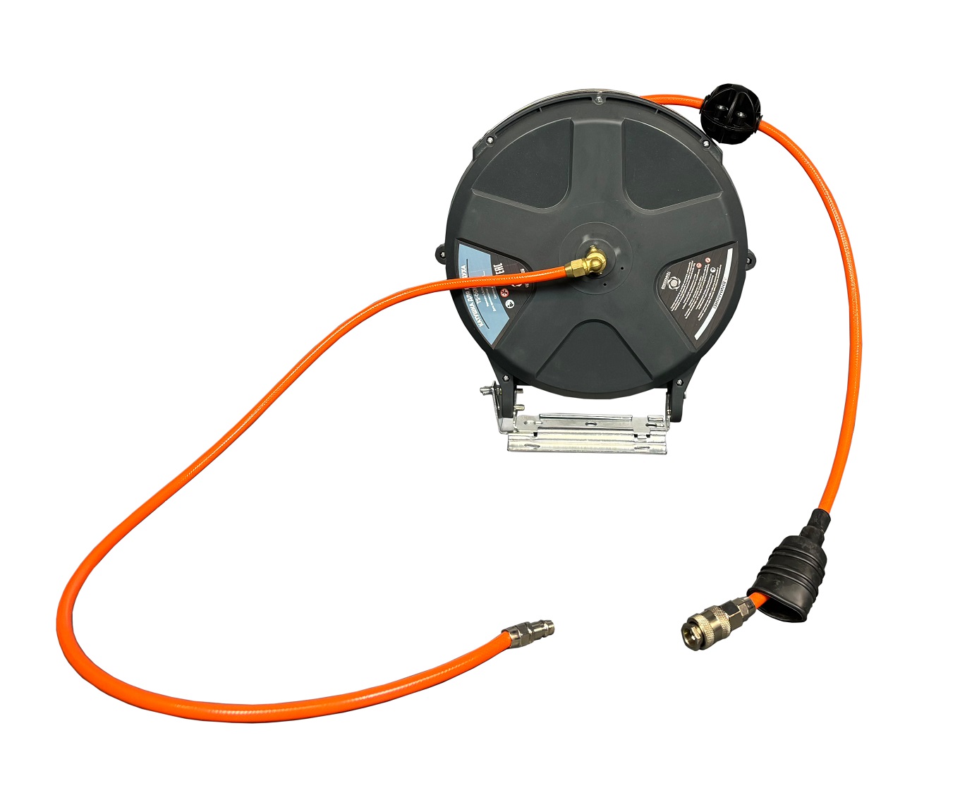 Катушка воздушная для быстрого подключения пневмоинструмента на мойках, шиномонтажах и в автосервисах. Экономит место и не мешается под ногами. Катушка бережет шланги от перегиба и наезда колесами. Самосматывающаяся, настенная для воздуха -10м. Сечение Ø 6,5 - 10 мм. Подключение – быстросъем.