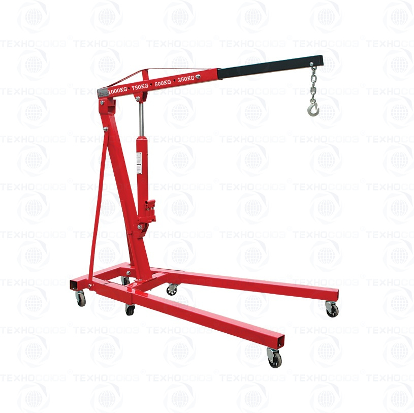 Кран гидравлический гаражный для подъёма и перемещения агрегатов автомобиля по гаражу – 1т. Телескопические лапы гидравлического крана имеют регулировку по длине. Регулировка по грузоподъемности 0,25-0,5-0,75-1т. Высота подъёма крана от пола цеха – 0÷2150 мм. Вес: 50 кг.
