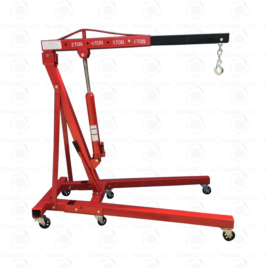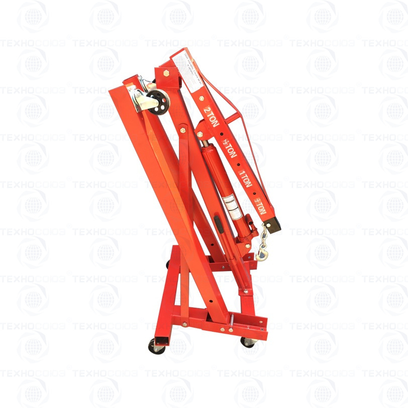 Складной. Кран гидравлический гаражный для подъёма и перемещения агрегатов автомобиля по гаражу – г/п. 2,0т. Регулировка по грузоподъемности 0.5÷1.0÷1.5÷2.0т. Высота подъёма крана от пола цеха – 0÷2170 мм. Вес: 55 кг.