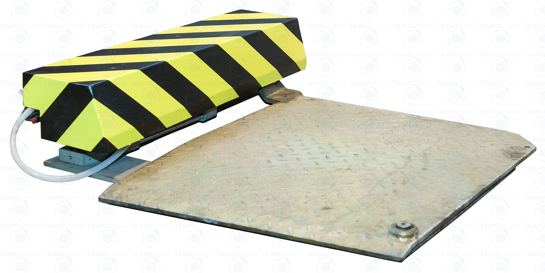 Платформа состоит из неподвижной плиты с плоскими антифрикционными прокладками, соединенной осью с подвижной плитой, и возможностью перемещения при помощи пневмоцилиндра, соединенного с подвижной плитой и неподвижной плитой посредством шарниров.