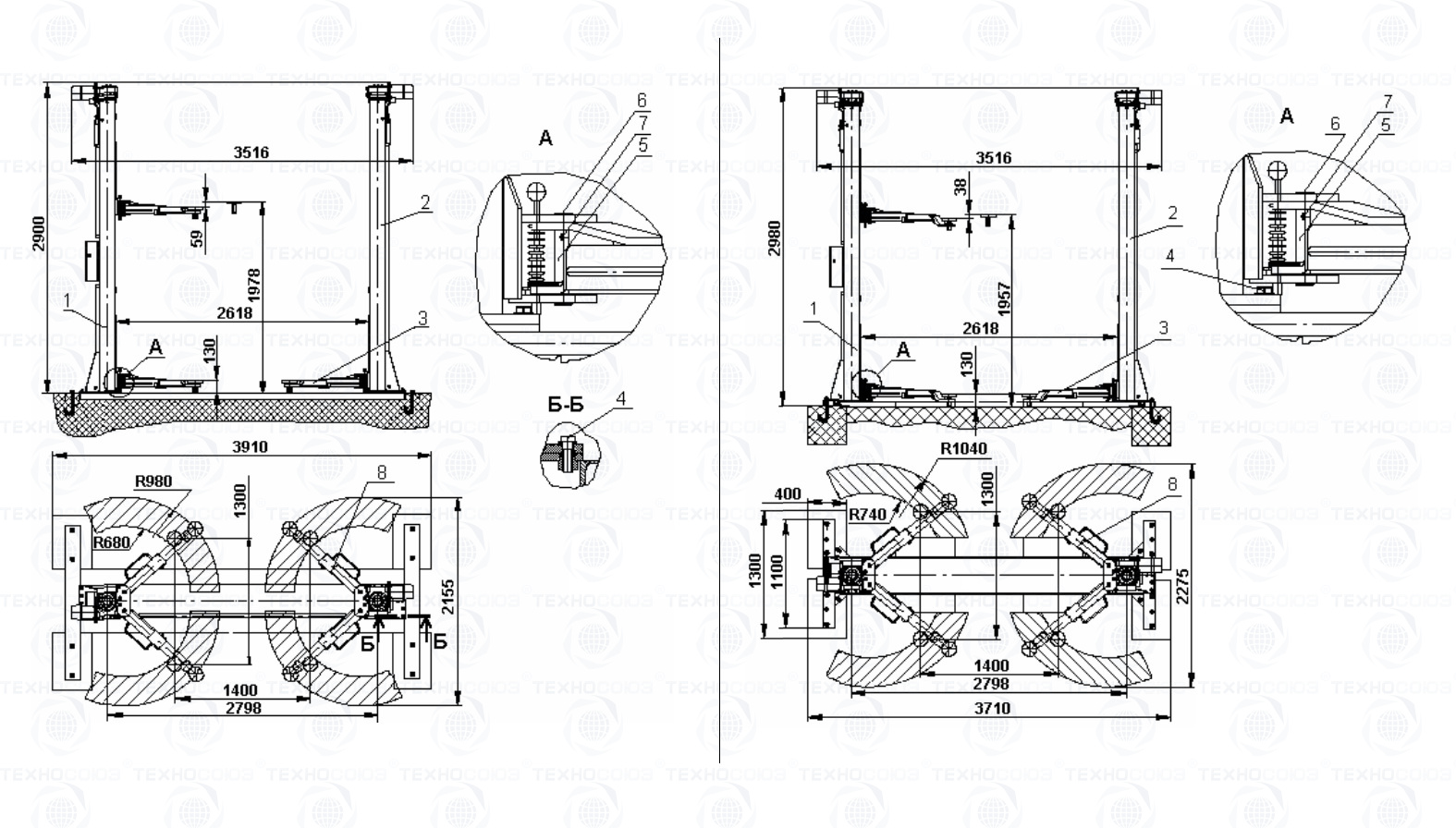 Подъемник ПЛД-3-01 комплектуется напольной рамой крепящейся к полу анкерными болтами. Анкерные болты поставляются по отдельному заказу и не входят в комплект поставки.