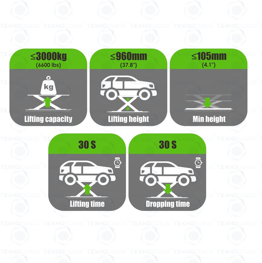 - Высота подхвата – 105 мм – может поднимать авто с «низкой» посадкой.