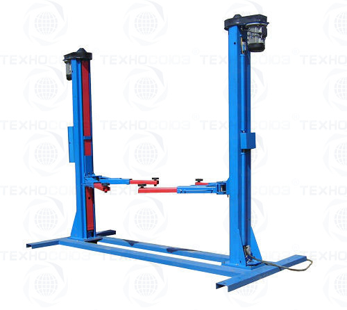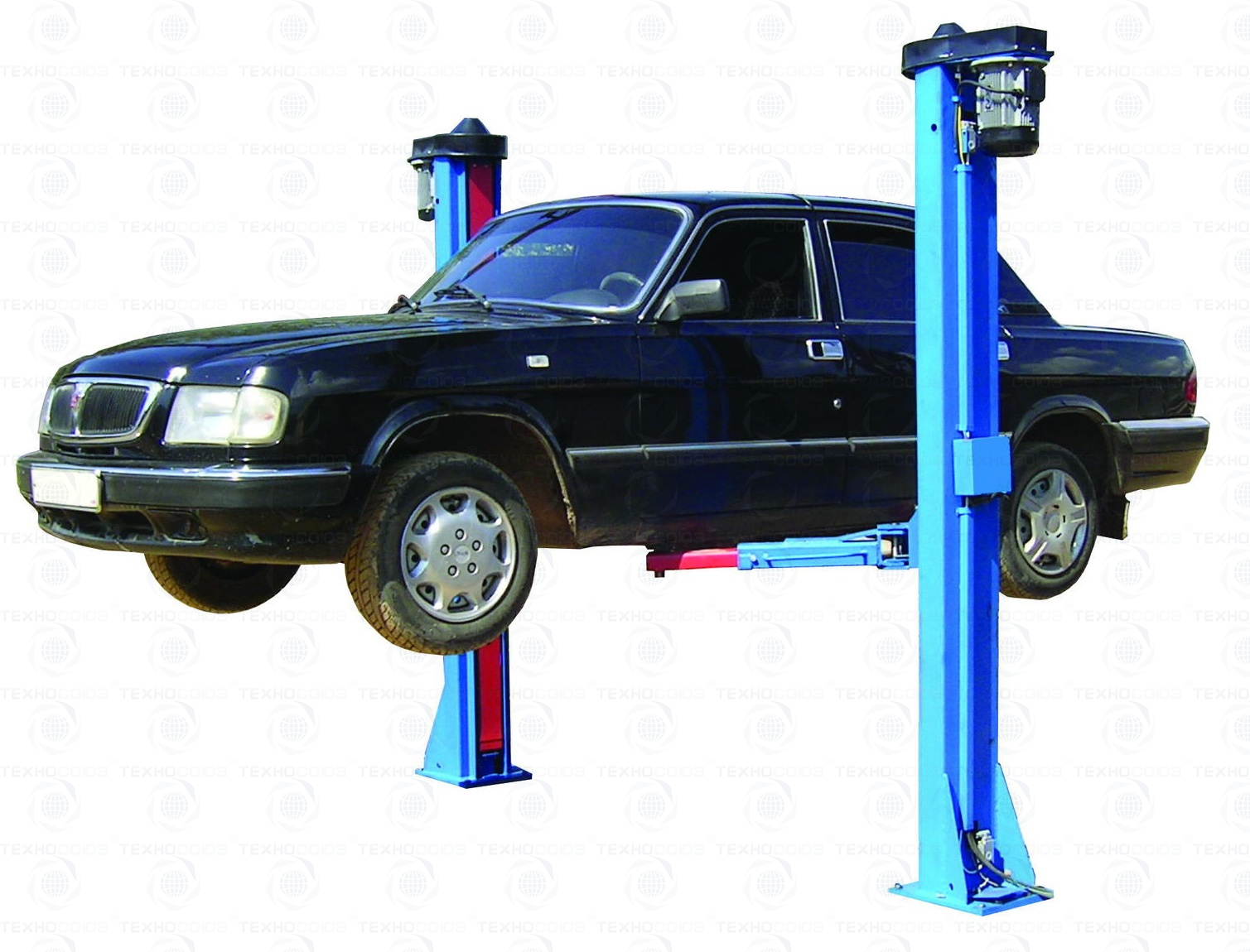 Подъемник с напольной рамой в комплекте. Электронная синхронизация, привод с клиноременной передачей, с концевыми выключателями нажимного действия, ограничивающими ход каретки. Предназначен для подъёма легковых автомобилей. Комплектуется соединительным кабелем электропитания между стойками. Максимальная г/п 3,3 тонны.