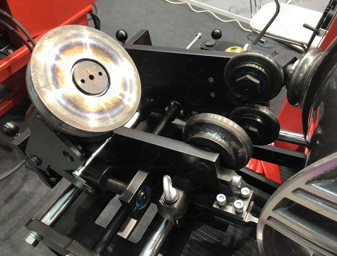 Основным преимуществом стенда является применение мощной гидравлики для перемещения и прижатия прокаточных роликов к диску, что позволяет станку справляться с ремонтом больших, до 17 дюймов в диаметре и до 3 мм толщиной стальных колёс легкогрузовых автомобилей и микроавтобусов.