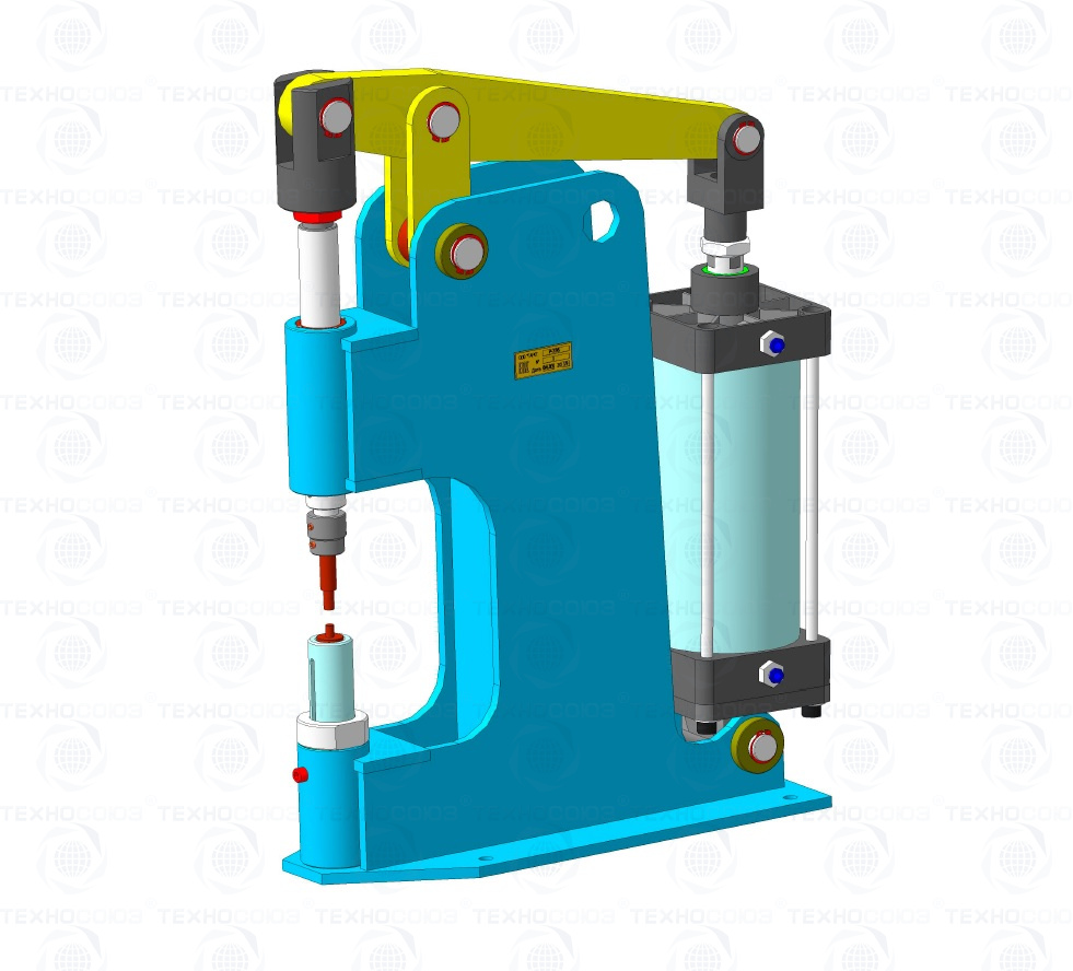 Клепальный пресс применяется при замене изношенных накладок при ремонте автомобилей на станциях технического обслуживания и автотранспортных предприятиях, имеющих пневмосеть. Тормозная колодка неподвижна, рабочий пуансон опускается сверху. Пуансоны легко заменяются, величину хода удобно настроить. Конструкция пресса проста и ремонтопригодна.