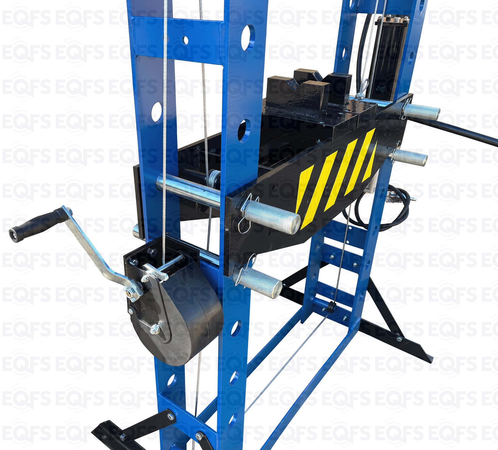 Рабочий стол в этих прессах очень тяжелый, для облегчения подъема и опускания используется лебедка.