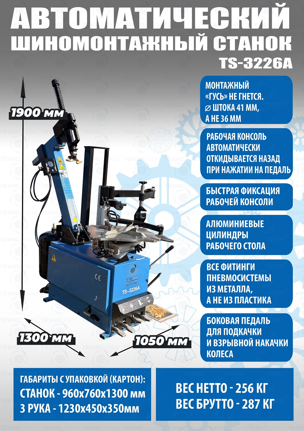 Автоматический шиномонтажный станок TS-3226A Оптимальный вариант цена/функционал. Самый продаваемый автоматический станок! + встроенный увеличенный бустер емкостью 24 литра (взрывная подкачка) + третья рука для работы с низкопрофильными шинами и RanFlat. Для колес легковых автомобилей, легких грузовиков, микроавтобусов и коммерческой техники. Внешний зажим 11-21”. Внутренний зажим 12-24”. Поставляем на 220В и 380В.