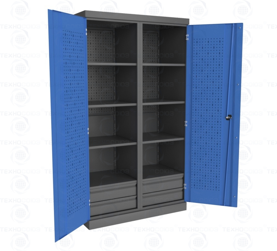 Шкаф инструментальный серии «PROFFI» предназначен для хранения оснастки, приспособлений и инструмента на рабочих местах в мастерских, цехах и других производственных зонах. Шкаф изготовлен из листовой стали и обеспечивает надежное запирание дверей ригельной системой. Шкаф данной модели может комплектоваться либо полками PROFFI(1) и ящиками PROFFI(1) – по всей ширине шкафа, при этом максимальное количество полок и ящиков по высоте - 14 штук.