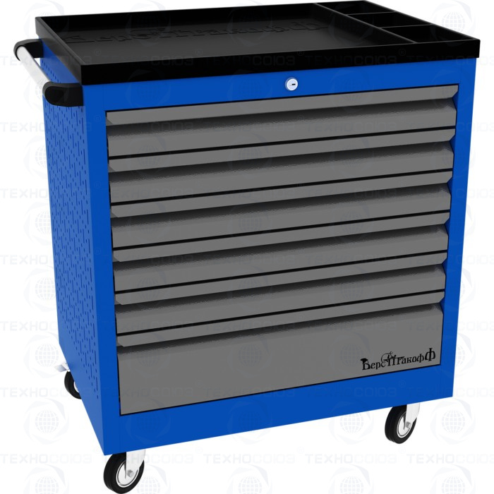 Тележки инструментальные серии PROFFI 795 предназначены для использования на предприятиях любого профиля занятых ремонтом и изготовлением различной продукции. Тележки изготовлены высотой 795 мм что позволяет размещать их под верстаками и рабочими столами серии PROFFI, что позволяет сэкономить рабочее пространство помещении. На боковые стенки инструментальной тележки нанесена перфорация размером 25х25 мм и диаметром отверстия 8 мм, что позволяет устанавливать на них навесной инструмент или крючки. Наибольшей популярностью тележки инструментальные пользуются в сфере авторемонта и обслуживания автомобилей. Тележки имеют выдвижные ящики на шариковых телескопических направляющих полного выдвижения с фиксацией в закрытом положении, предотвращающее открывание при передвижении тележки. Ящики имеют центральный замок, который позволяет ограничить доступ посторонних лиц к содержимому ящиков. Тележка инструментальная изготовлена из высококачественного металла ведущих Российских производителей, покрашена порошковой краской производства Германии, имеет итальянскую и турецкую фурнитуру. Тележки для инструмента оснащены двумя не поворотными колесами диаметром 100 мм, одним поворотным и одним поворотным со стопором, которое фиксирует тележку и предотвращает непроизвольное скатывание.