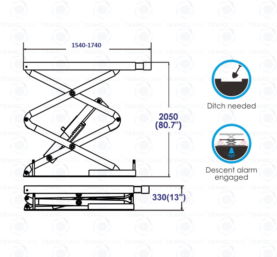 - Звуковой сигнал при опускании подъемника (исключает получения травм ног).