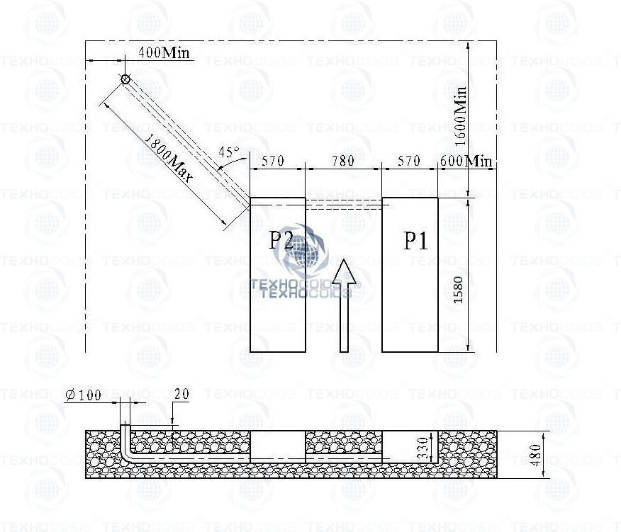 Заглубление, мм 330