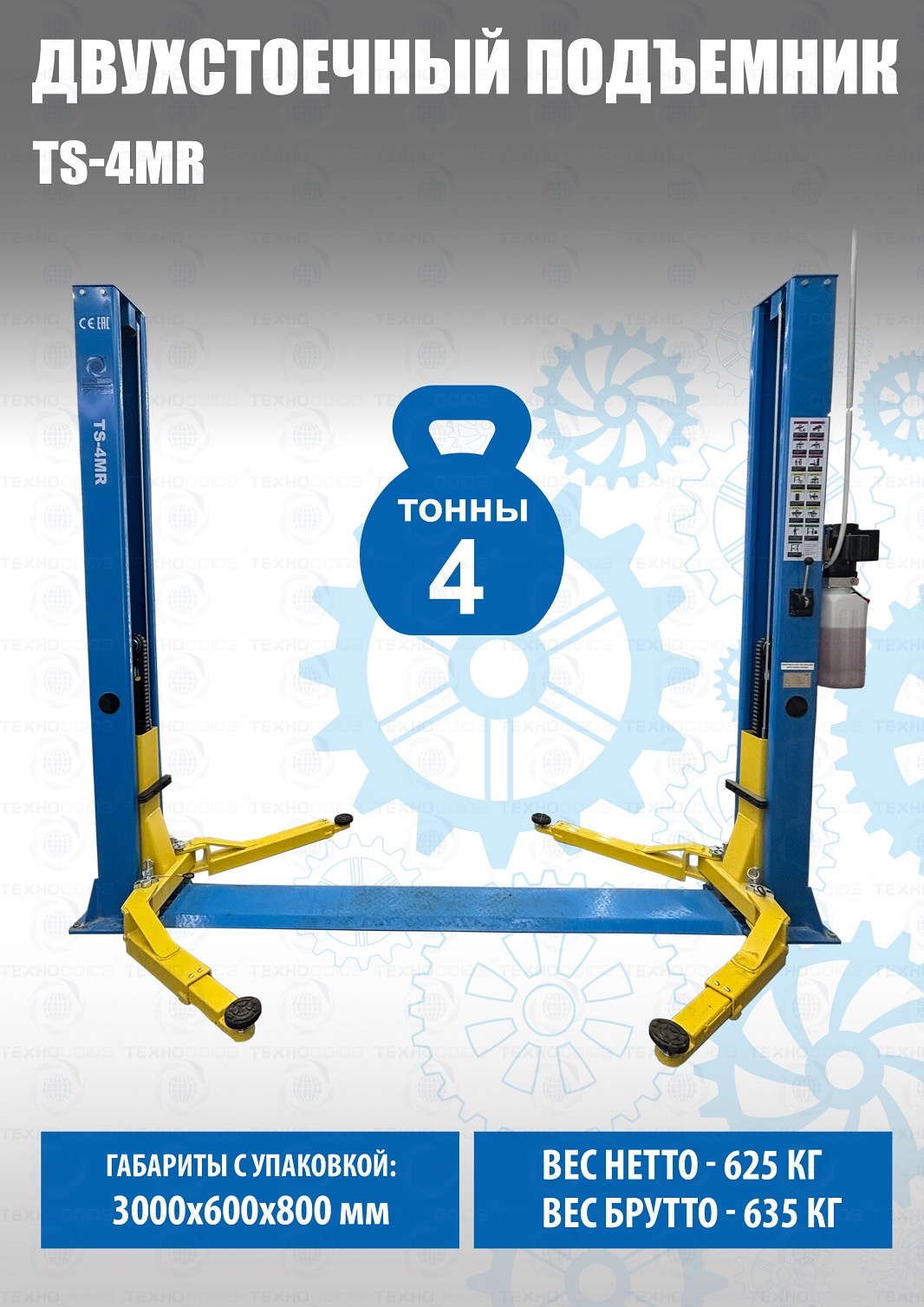 TS-4MR Подъемник 2-хст. г/п 4 т съем-ручка+проставки (2025)