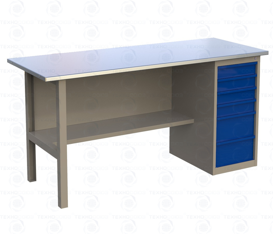 Конструкции столешницы и короба разработаны таким образом, чтобы после сборки верстака на его рабочей поверхности отсутствовали неиспользуемые отверстия для крепежных элементов, головки болтов, заклепок и т.д.