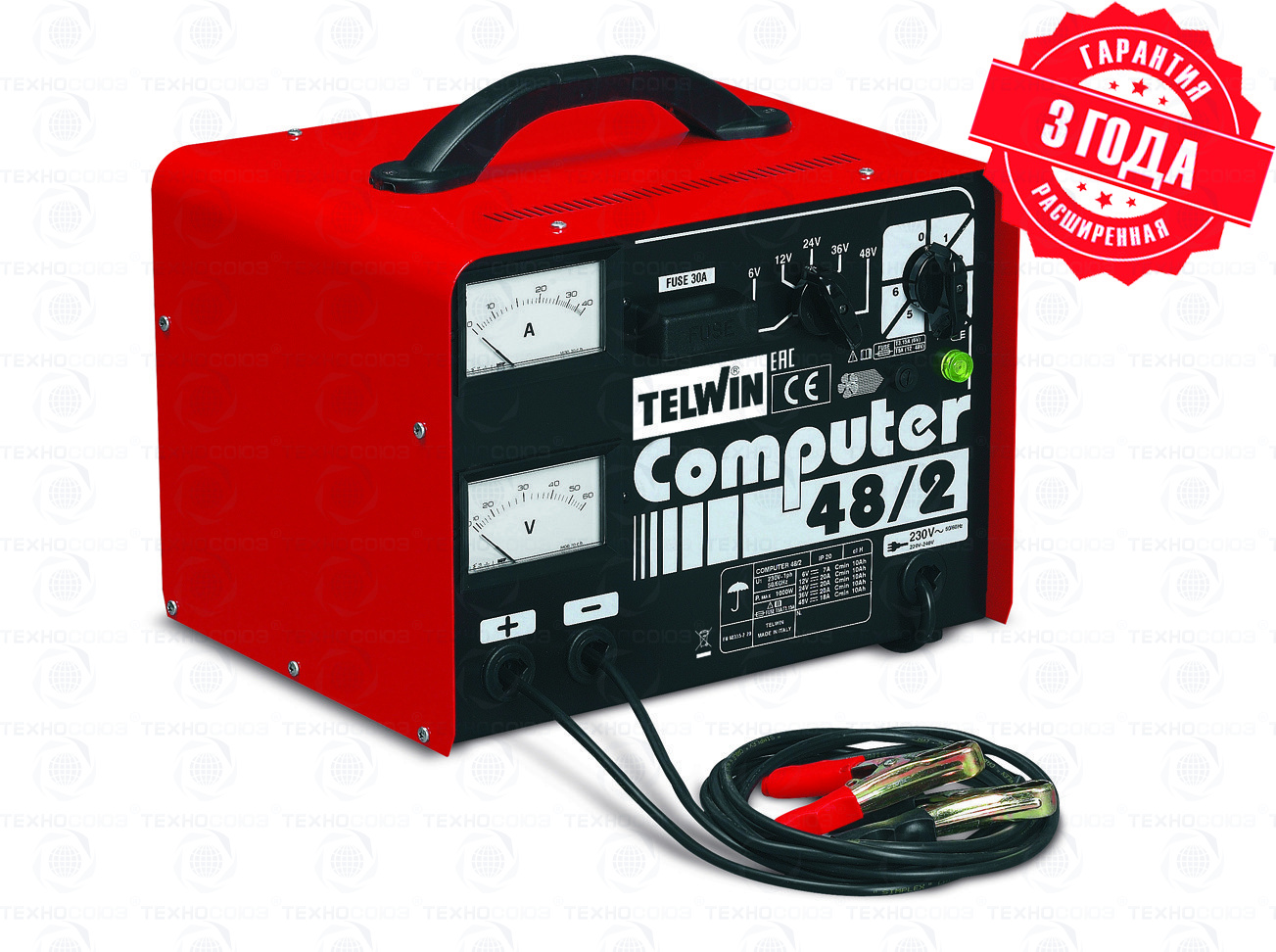 Мощность 1 кВт. Профессиональное переносное зарядное устройство COMPUTER 48/2 PROF 230V 6-48V-для зарядки всех типов аккумуляторов (WET) с напряжением 6/12/24/36/48 В, с защитой от перегрузки и смены полярностей. Позволяет одновременно заряжать несколько аккумуляторов, соединенных последовательно. Укомплектовано амперметром и вольтметром. Применяется для заряда аккумуляторов мотоциклов, легковых автомобилей, фургонов, тракторов, грузовых автомобилей, экскаваторов. 3 года гарантии. Сделано в ИТАЛИИ.